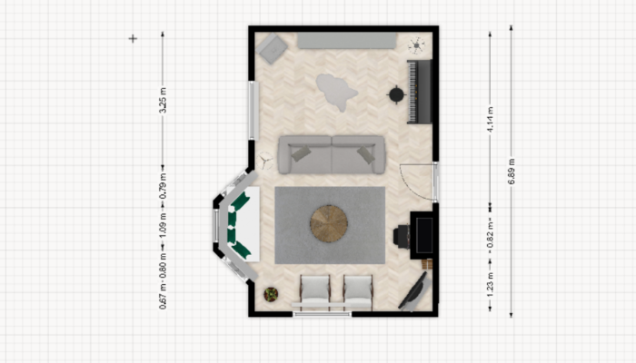 3. Nadat het moodboard is besproken en goed gekeurd, ga ik aan de slag met een interieurplan: